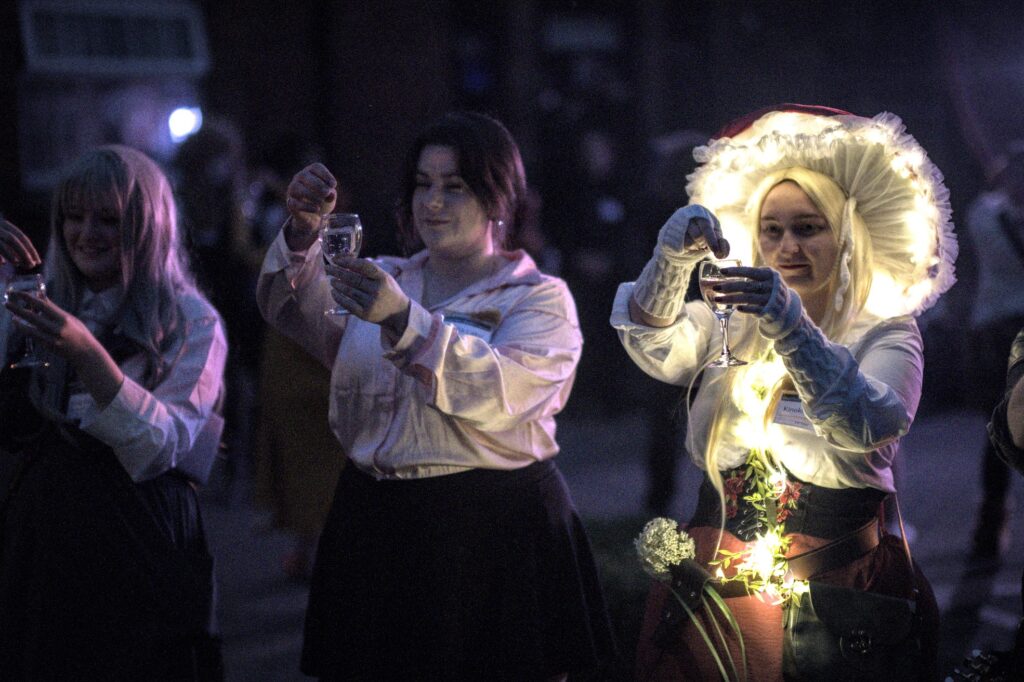If you want, you can also bring a more festive outfit for the Opening Ball. There is no dress code, and on the ball night you can see everything from everyday wear to glamorous gowns and suits. Some just change into a fancier shirt or put on a fun party dress, some come in their school robes, and some get creative in various ways. In any case, don’t stress about what to wear. It’s the party itself that counts!